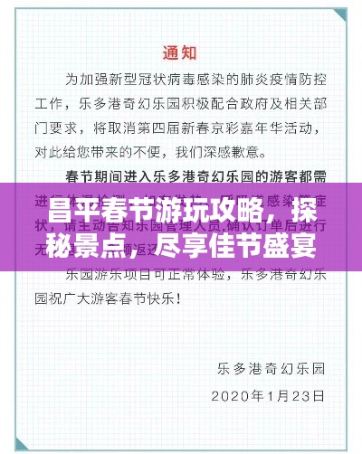 随着春节的临近,许多人选择在这个特殊的时刻出游,享受与家人团聚的欢乐时光,昌平,作为北京的近郊区,拥有丰富的历史文化和美丽的自然风光,成为许多游客的出游首选,本文将为您提供一份详尽的春节昌平旅游攻略,带您领略昌平的风土人情。