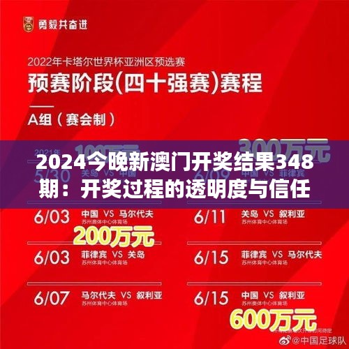 2024今晚新澳门开奖结果348期:开奖过程的透明度与信任